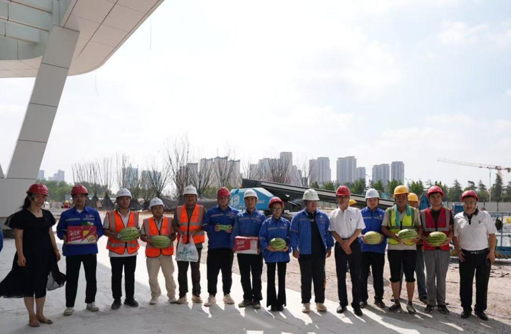 在項目施工現場,羅賢河一行為辛勤工作的建設者們送上防暑降溫物資,對大家不畏高溫、堅守崗位的奉獻精神表示高度贊揚和衷心感謝。羅賢河叮囑項目負責人務必把施工人員的健康安全放在首位,科學安排作業時間,嚴格落實防暑降溫措施,確保高溫季節施工安全有序。隨后召開的項目建設專題推進會上,院方代表、建設單位及施工單位主要負責人分別就項目進展、施工計劃、存在困難及保障措施進行了匯報。