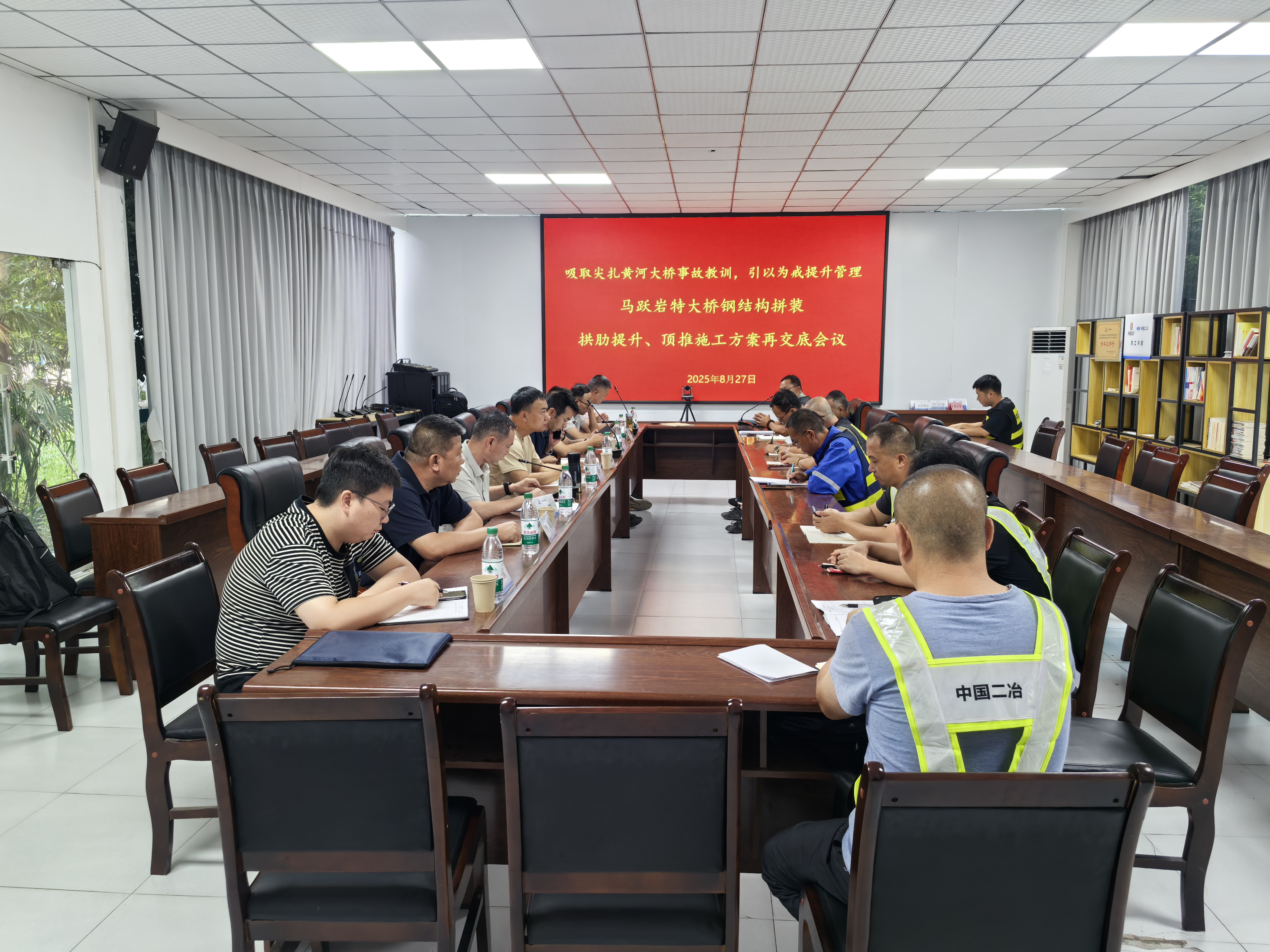 中國二冶安監(jiān)部、質(zhì)環(huán)部和項管部相關(guān)人員;四川分公司副總經(jīng)理,安全總監(jiān)及項目各參建單位參加此次會議。