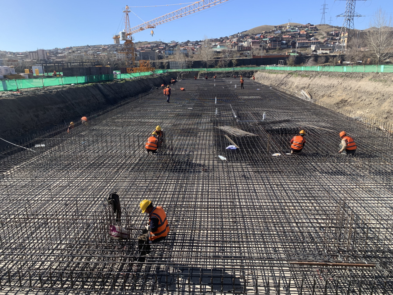 本項目位于蒙古國首都烏蘭巴托的核心區(qū)域,總建筑面積達14.8萬平方米,主要包括12棟9層住宅樓和8棟12層住宅樓,共計1980戶住宅單元,是烏蘭巴托市重點民生工程。項目開工建設后,從土方大開挖到大面積支模,從縱橫交錯密如蛛網的鋼筋綁扎到筏板基礎大體積混凝土澆筑,項目團隊以“開局就是決戰(zhàn),起步就要沖刺”的奮斗姿態(tài),合理調配施工力量,嚴格落實安全管控與質量監(jiān)督,筑牢安全質量“雙防線”,保障作業(yè)流程安全無縫銜接。連日來,二百余名建設者凝心聚力,攻堅克難,開啟大干模式,晝夜輪班奮戰(zhàn),高效優(yōu)質完成10棟樓筏板基礎施工任務,受到蒙方項目管理機構主要領導的好評。