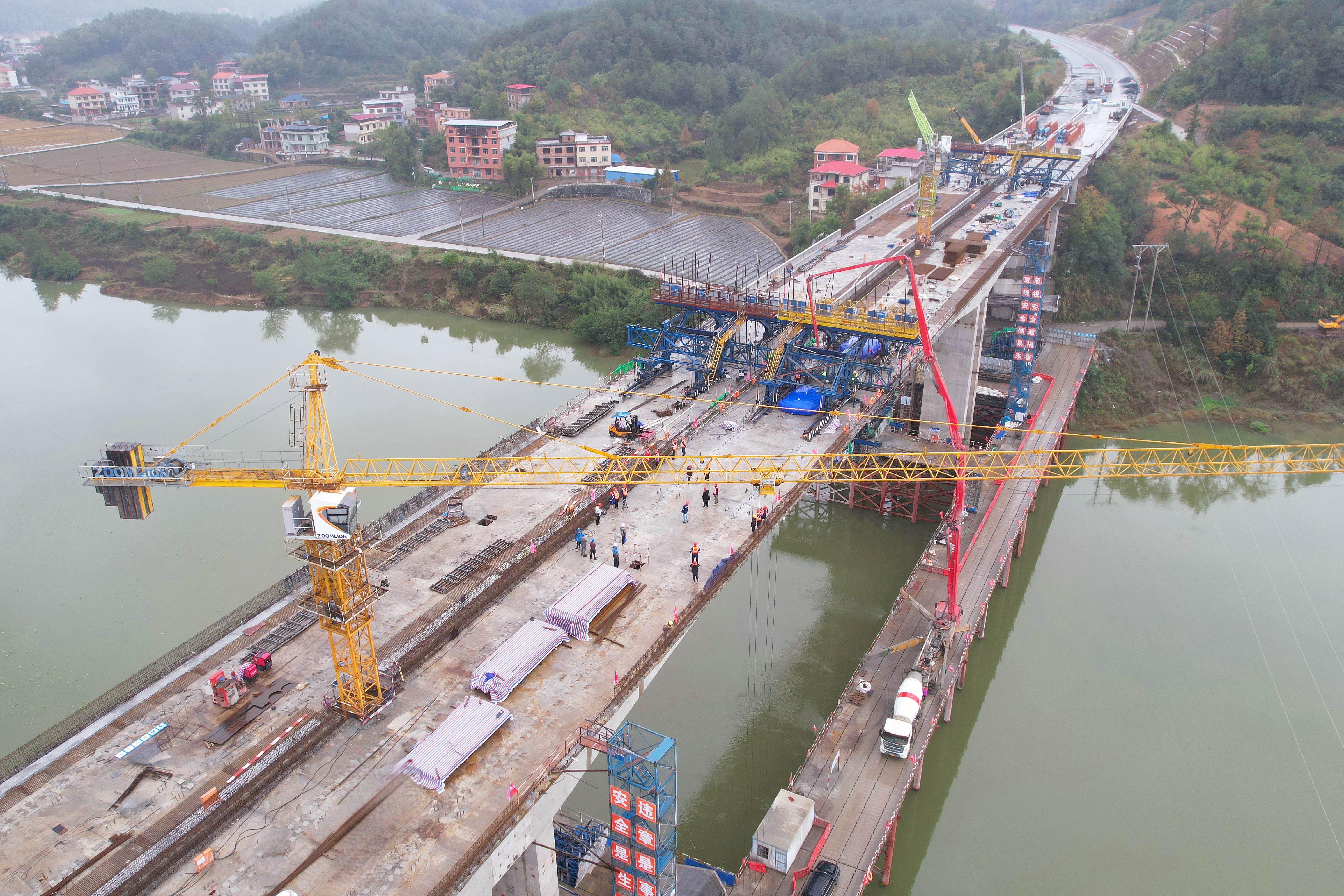 喀斯特峰巒層林盡染,紅黃綠交織成畫;隆回赧水之畔,一陣振奮人心的歡呼聲穿透層林——11月10日,隨著最后一方混凝土精準入模,中國二冶承建的G59呼北高速新新段周家赧水特大橋主橋順利合龍。這一關鍵節點的攻克,不僅標志著項目最后一個控制性工程圓滿收官,更在“大干四季度”的沖刺熱潮中,為全線通車按下了決戰決勝的“快進鍵”。