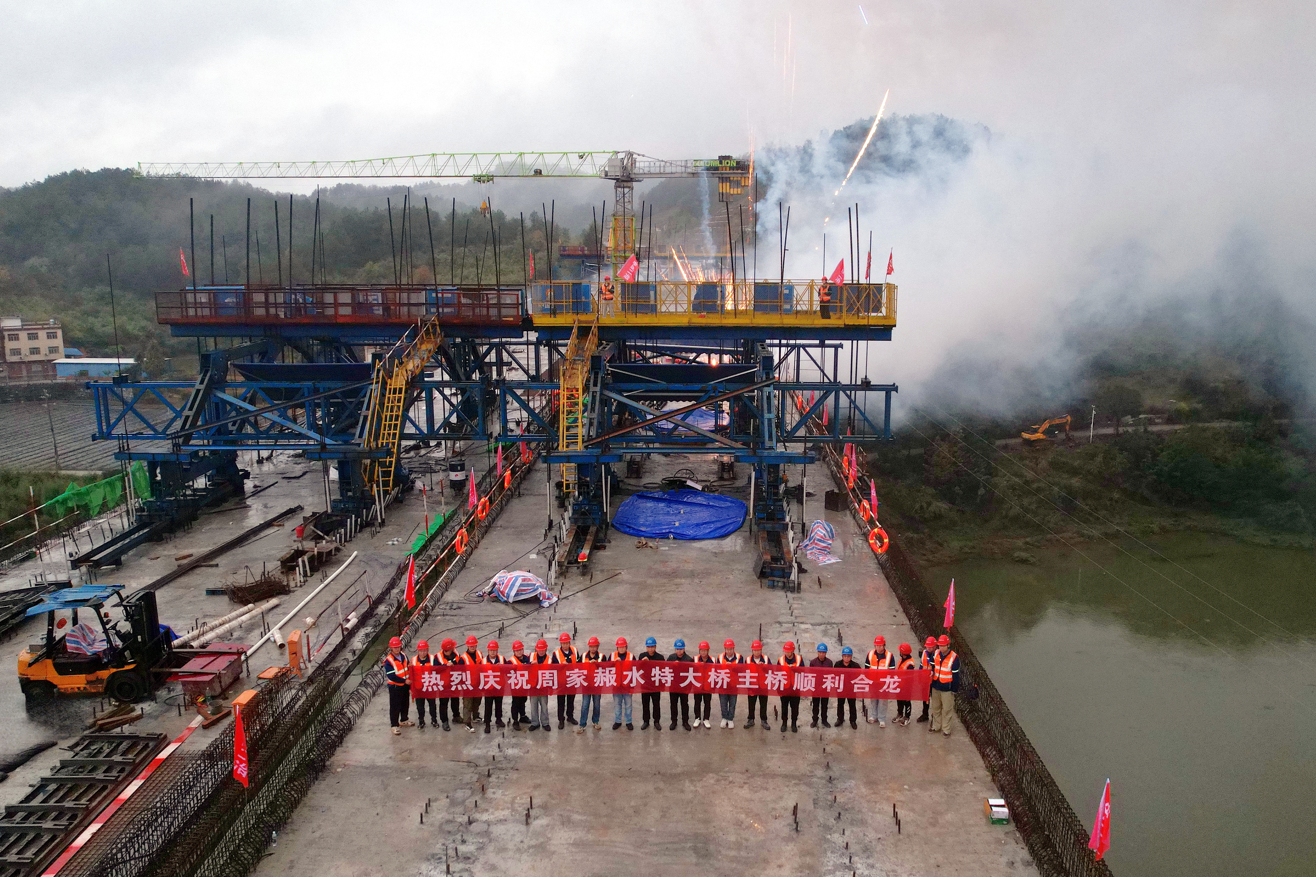 當最后一方混凝土澆筑完成,現場技術人員即刻用全站儀及水準儀對梁體的線形及標高進行復測觀察,——各項指標全部達標,這座承載著無數心血的特大橋,終于在赧水之上實現“精準合龍,完美牽手”。