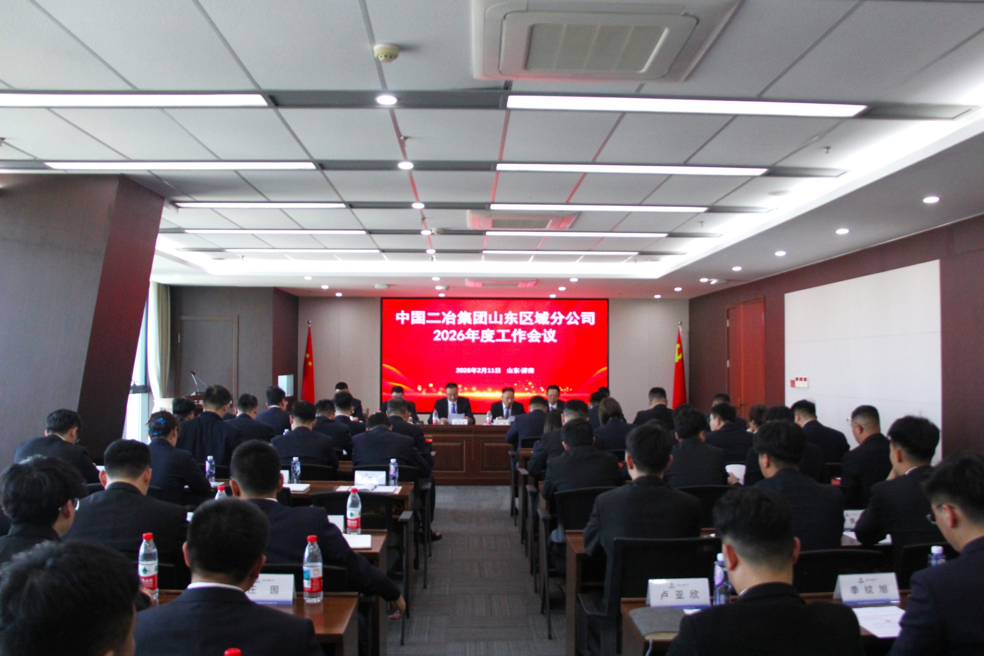 2月11日,山東分公司2026年度工作會議在濟南召開,會議深刻學習貫徹黨的二十大與二十屆四中全會精神,傳達落實中國五礦、中國中冶、中國二冶年度工作會議精神以及各項決策部署,總結2025年主要工作,部署2026年重點任務。分公司總經理郝寶成作工作報告;黨委副書記、紀委書記尹旭主持會議并傳達上級工作會議精神;總工程師陳曦宣讀先進表彰決定;總會計師葉賢斌宣讀考務獎勵決定。