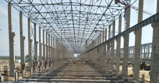 提到內(nèi)蒙古達(dá)拉特旗,人們會自然聯(lián)想到風(fēng)景優(yōu)美的庫布齊沙漠和響沙灣風(fēng)景區(qū),這里大漠浩瀚、瑰麗壯觀,是全國著名的沙漠旅游風(fēng)景區(qū)。但對于踏上這片沙漠的建設(shè)者來說,飛沙揚(yáng)礫、綿延千里的沙漠只是他們征戰(zhàn)的沙場。2017年大年初六,大多數(shù)人們還沉浸在春節(jié)的團(tuán)圓喜慶之中,而項(xiàng)目部的管理人員卻已經(jīng)在一片春寒料峭中,開啟了嶄新的征程。從辦公區(qū)到制作區(qū),從選址到場地建設(shè),項(xiàng)目部在極短的時(shí)間內(nèi)完成了前期準(zhǔn)備工作。沙塵頻發(fā)且風(fēng)力較大,晝夜溫差極大,干燥少雨,冬寒夏熱,達(dá)拉特旗典型的沙漠氣候讓建設(shè)者們切切實(shí)實(shí)地領(lǐng)略了一把“大漠風(fēng)光”。由于甲方原因,該項(xiàng)目整體工期較其他單位相比,整體滯后了約五十天。項(xiàng)目部于六月初開始基礎(chǔ)施工,就面臨著工期緊張、場地狹小、交叉作業(yè)、自然條件惡劣等諸多困難,這著實(shí)考驗(yàn)著項(xiàng)目部的戰(zhàn)斗力和鋼結(jié)構(gòu)公司的管理水平。轉(zhuǎn)變思路,調(diào)整定位,中國二冶將該項(xiàng)目列為重點(diǎn)監(jiān)管工程,從人員配置、對接溝通、技術(shù)方案、物料準(zhǔn)備,方方面面都做足了功課,堅(jiān)決不打無準(zhǔn)備之仗。集團(tuán)重視、部門支持、項(xiàng)目部發(fā)力,多方協(xié)調(diào)齊抓共管之下,項(xiàng)目部科學(xué)管理,合理安排工期,將人員進(jìn)行分組,倒排工期,晝夜施工。頂著寒風(fēng),踏著積雪,迎著黃沙,從場地平整,到大臨建設(shè),從2017年6月5號基礎(chǔ)施工開始,到首榀予制柱吊裝成功,從500KA電解槽首臺樣槽落成,到8月5日屋頂主框架形成,建設(shè)者們斗嚴(yán)寒,戰(zhàn)酷暑,搶工期,抓進(jìn)度,在短短的三個(gè)月時(shí)間內(nèi),完成了鋼結(jié)構(gòu)制作安裝近一萬噸的工作量,1#、2#煙氣凈化系統(tǒng)全部完成,電解槽基礎(chǔ)及短柱施工累計(jì)完成92臺。11月2日,一節(jié)長41米,重26噸的氧化鋁輸送通廊,由200噸履帶吊順利安裝到位,標(biāo)志著氧化鋁車間關(guān)鍵的通廊節(jié)點(diǎn)順利完成。12月6日,2#電解車間92臺電解槽上部結(jié)構(gòu)制作任務(wù)全部完成。質(zhì)量好,進(jìn)度快,這樣的“鋼結(jié)構(gòu)速度”贏得了多方的高度贊譽(yù),并獲得了甲方的獎勵,為后續(xù)市場的開拓奠定了基礎(chǔ),為中國二冶贏得了良好的口碑,也標(biāo)志著鋼結(jié)構(gòu)公司亮劍大型綜合類施工項(xiàng)目首戰(zhàn)告捷。