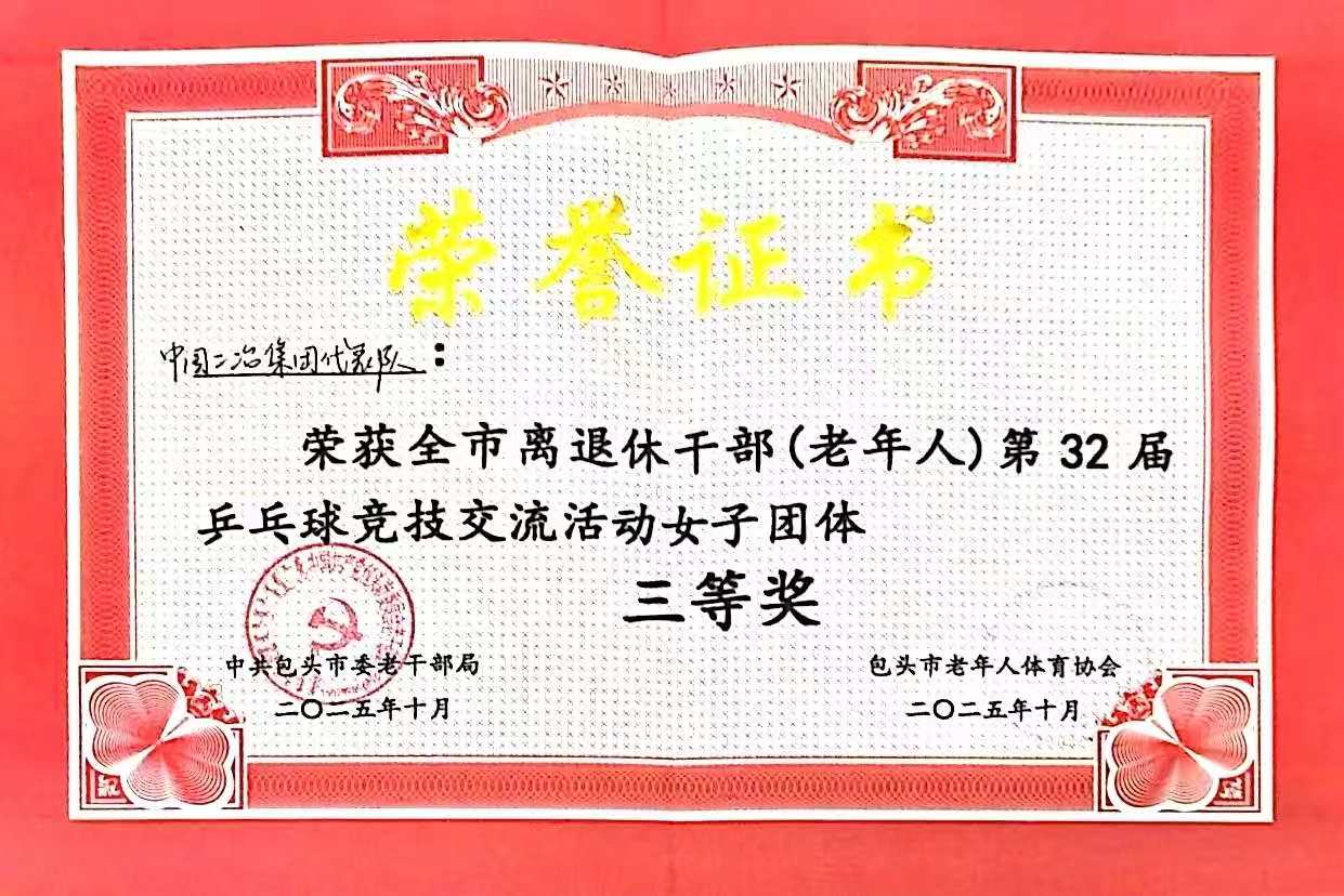 近日,由包頭市委老干部局、市老年人體育協會主辦,市老干部活動服務中心承辦的全市離退休干部(老年人)第32屆乒乓球競技交流活動圓滿結束,中國二冶在此次活動中成功斬獲優秀組織獎與女子團體三等獎兩項榮譽。