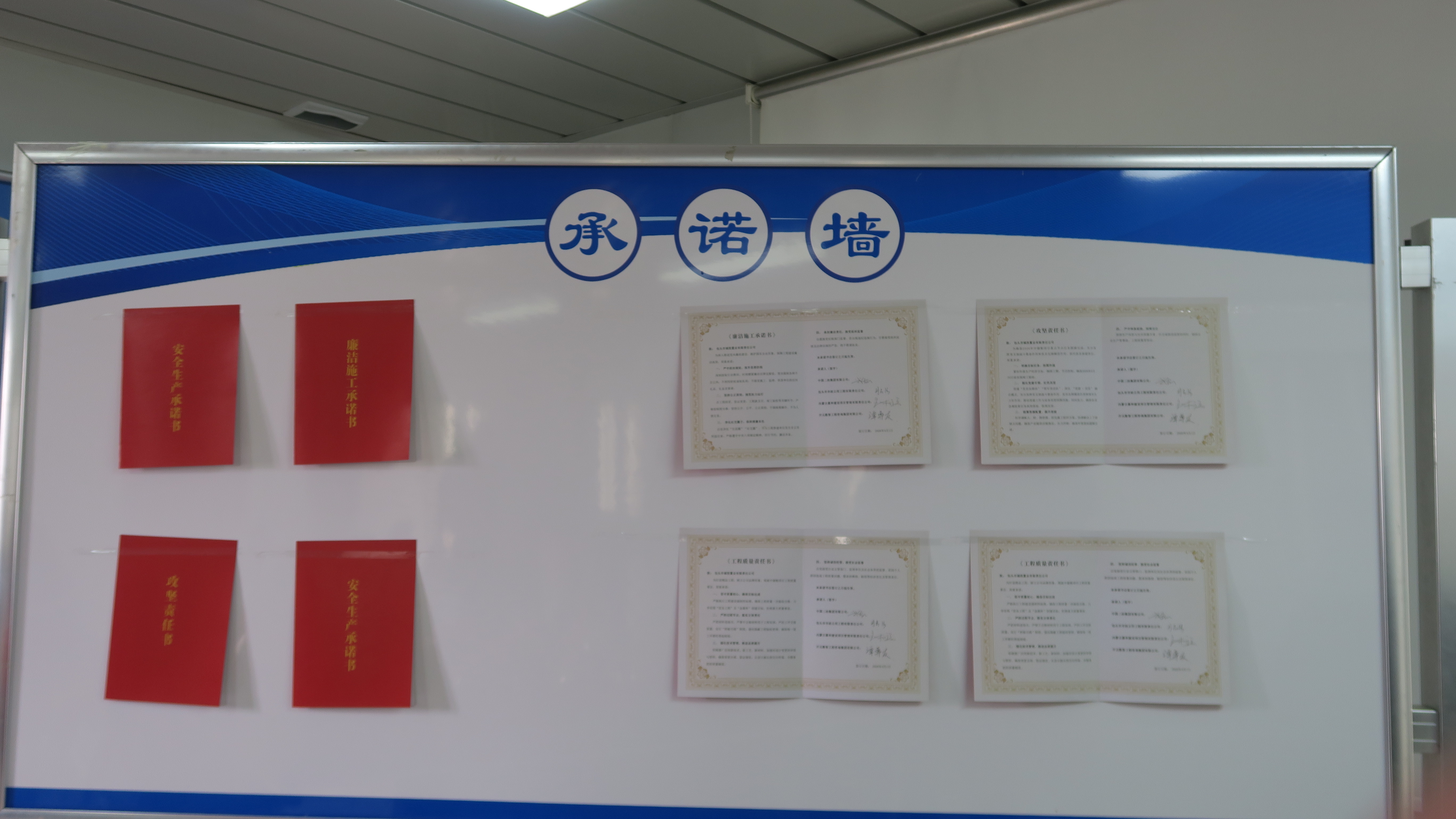 承諾上墻,接受全員監(jiān)督。活動(dòng)現(xiàn)場(chǎng)舉行了莊重的復(fù)工復(fù)產(chǎn)承諾儀式。來自各參建單位的黨員代表、班組骨干代表依次簽訂《安全生產(chǎn)承諾書》《工程質(zhì)量責(zé)任書》《廉潔施工承諾書》及《攻堅(jiān)責(zé)任書》,并現(xiàn)場(chǎng)張貼于“承諾墻”上,主動(dòng)接受全員監(jiān)督。一份份承諾,既是沉甸甸的責(zé)任,更是對(duì)打造精品工程、廉潔工程、安全工程的莊嚴(yán)宣示。