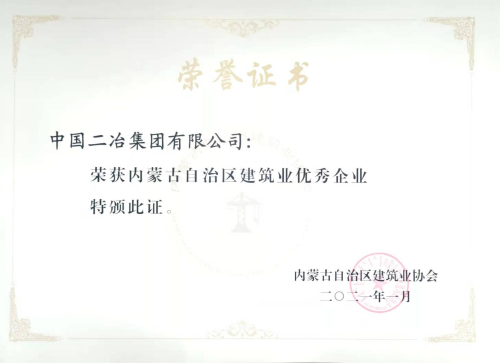 3月25日,內蒙古自治區建筑業協會文件(內建協【2021】)17號)公布了全區106家建筑業優秀企業、80名建筑業優秀企業家、337名優秀項目經理名單。中國二冶被授予“內蒙古自治區建筑業優秀企業”榮譽稱號;公司總經理、黨委副書記高文華被授予“內蒙古自治區建筑業優秀企業家”;陜西分公司副總經理傅雅江、房地產開發公司項目經理潘濤、付云階,鋼結構分公司項目經理田忠剛榮獲“內蒙古自治區優秀建造師(優秀項目經理)”榮譽稱號。