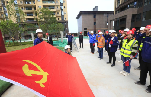 在辦實(shí)事、開新局環(huán)節(jié),項(xiàng)目全體黨員在黨旗下重溫入黨誓詞,表示要踐行長(zhǎng)征精神,建設(shè)人民滿意工程,更加堅(jiān)定作為一名共產(chǎn)黨員的理想信念;活動(dòng)中,中國(guó)二冶黨群工作部向黨員突擊隊(duì)和青年突擊隊(duì)授旗,各方代表表達(dá)了“踐行初心使命,認(rèn)真履職盡責(zé)”的決心;全體職工簽下請(qǐng)戰(zhàn)書,紛紛表示將繼續(xù)充分發(fā)揚(yáng)“一天也不耽誤,一天也不懈怠”的中冶精神,以求真務(wù)實(shí)、開拓創(chuàng)新的精神,把全部力量凝聚到項(xiàng)目建設(shè)中來(lái),向成都市人民交出一份滿意的答卷,隨后,各方代表圍繞安全環(huán)保、項(xiàng)目建設(shè)、工程質(zhì)量、工程進(jìn)度等情況進(jìn)行充分探討,對(duì)中國(guó)二冶董家埂社區(qū)工程的建設(shè)亮點(diǎn)進(jìn)行深入了解。