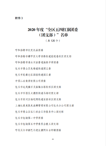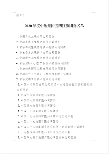 五四青年節(jié)前夕,共青團(tuán)內(nèi)蒙古自治區(qū)團(tuán)委、中冶集團(tuán)團(tuán)委分別發(fā)布表彰決定,授予中國二冶團(tuán)委“2020年度五四紅旗團(tuán)委”榮譽(yù)稱號,同時(shí),公司團(tuán)委被共青團(tuán)包頭市委員會2020年工作考核等次評定為“實(shí)績突出”。