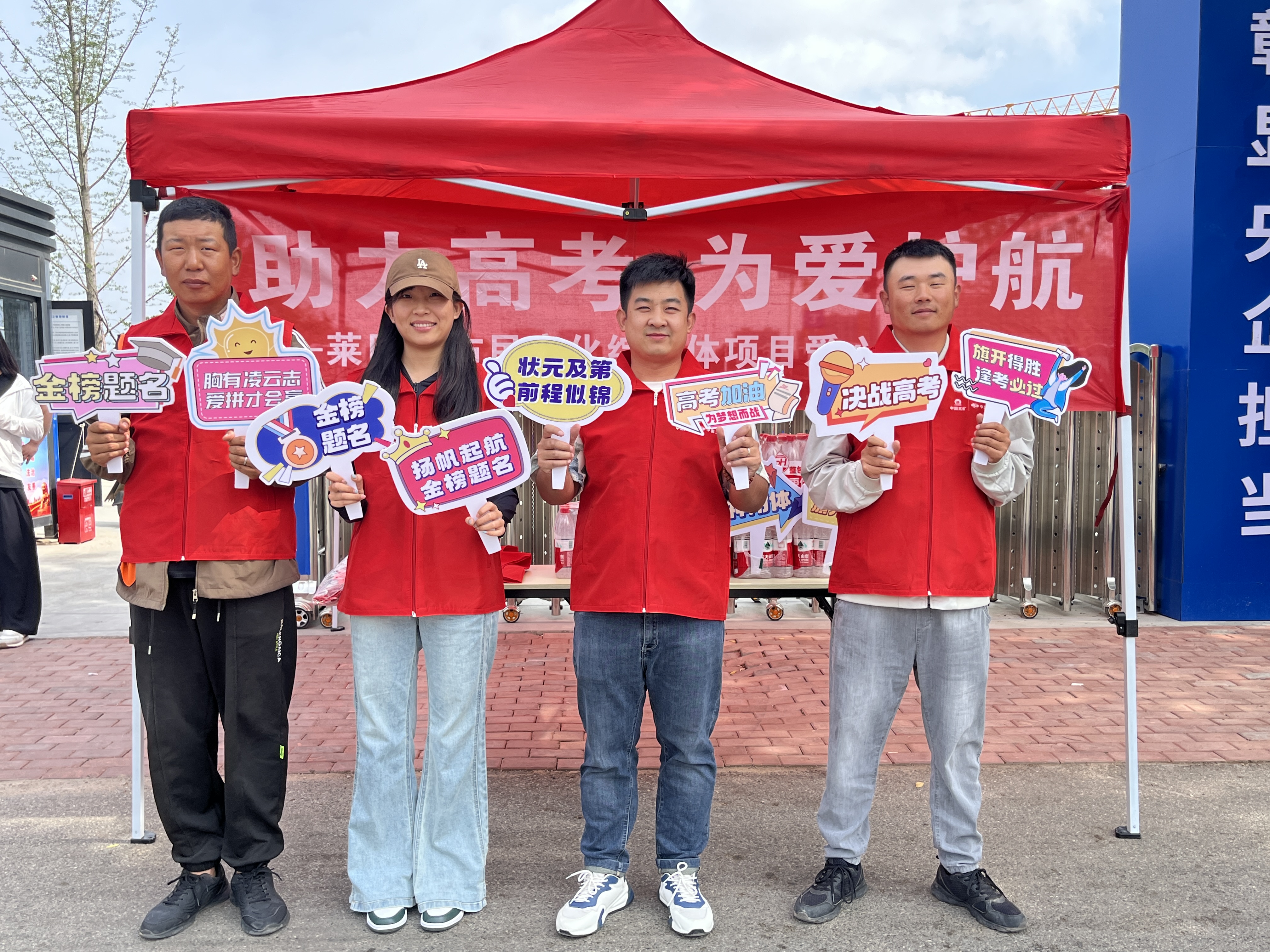 萊陽市民文化綜合體項目部團支部設立愛心助考點,為高考學子、候考家長及現場志愿者、交警提供飲用水,青年志愿者用自己的點滴善舉傳遞真情和真心的祝愿,以實際行動播撒文明、傳遞愛心,為和諧高考、溫暖高考貢獻出自己的一份綿薄之力。