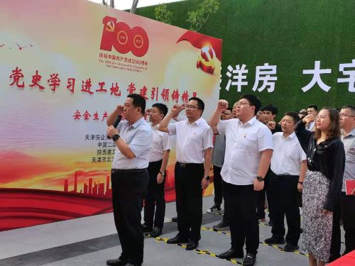 本次活動中,天津振業(yè)津海開發(fā)有限公司書記、董事長謝向榮帶領(lǐng)大家重溫建黨歷程,致敬英雄史記。王哲作表態(tài)發(fā)言,他提到生命至高無上,安全責(zé)任為天,并和大家分享了項(xiàng)目部工地黨建情況,及黨建引領(lǐng)施工的理念和落實(shí)情況,強(qiáng)調(diào)下一步如何提升項(xiàng)目品質(zhì)和項(xiàng)目管控重點(diǎn),同時指出天津振業(yè)項(xiàng)目將繼續(xù)發(fā)揮央企擔(dān)當(dāng),獻(xiàn)禮建黨100周年,打造精品工程。
