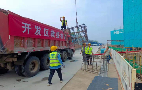 在這緊要關(guān)頭,中國(guó)二冶集團(tuán)鶴壁項(xiàng)目部首當(dāng)其沖,積極響應(yīng)政府號(hào)召,迅速投入到落實(shí)防洪救災(zāi)工作,踐行央企社會(huì)責(zé)任。但持續(xù)強(qiáng)降雨也使得鶴壁項(xiàng)目部施工現(xiàn)場(chǎng)受災(zāi)嚴(yán)重,基坑被淹、機(jī)械設(shè)備被泡均無(wú)法使用,項(xiàng)目部當(dāng)機(jī)立斷購(gòu)置支援所需的焊機(jī)、切割機(jī)等機(jī)具,克服種種困難第一時(shí)間組織工人制作鋼筋籠,為抗洪一線送去援助。