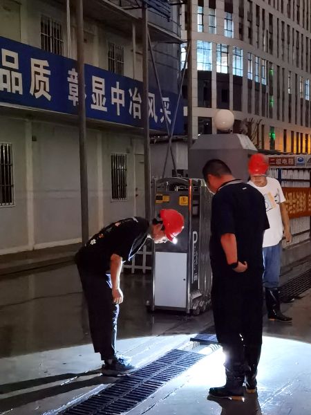 風雨將至,但安全隱患未除,身著“中冶藍”的建設者們總是不放心?,F場人員全部得到妥善安置后,項目部防臺防汛領導小組逆風而行冒雨深入施工現場,對臺風天氣下可能存在的安全隱患進行逐一排查,當場發現問題,當場加固整改。為了防止出現人員反流,項目部堅持夜間巡查制度,對施工現場及作業生活區進行值守,做好現場基坑降排水措施,防治基礎泡水及雨水倒灌,將災害損失降到最低。