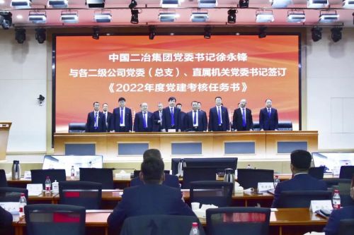 徐永鋒與各分公司黨委(總支)書記簽訂《2022年度黨建考核任務(wù)書》。