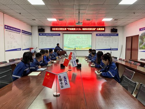 11月18日,天莊項目部黨支部召開主題黨課認真學習黨的二十大精神。